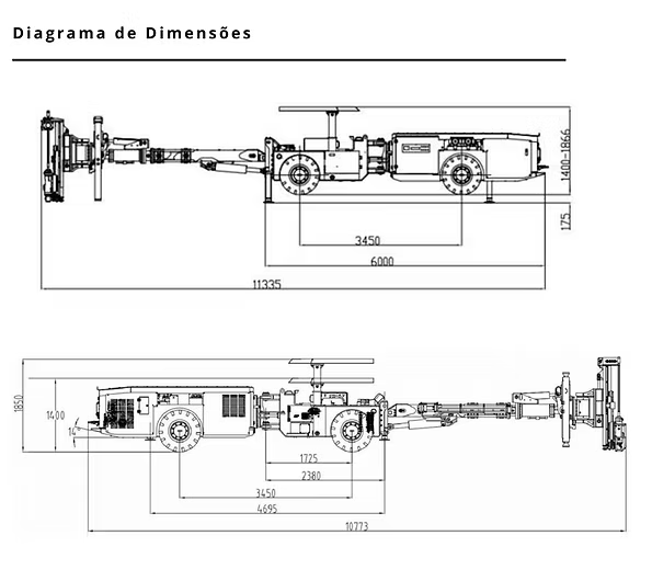 • Tamanho Geral: 11.335 x 2.250 x 1.400 (1.866) mm